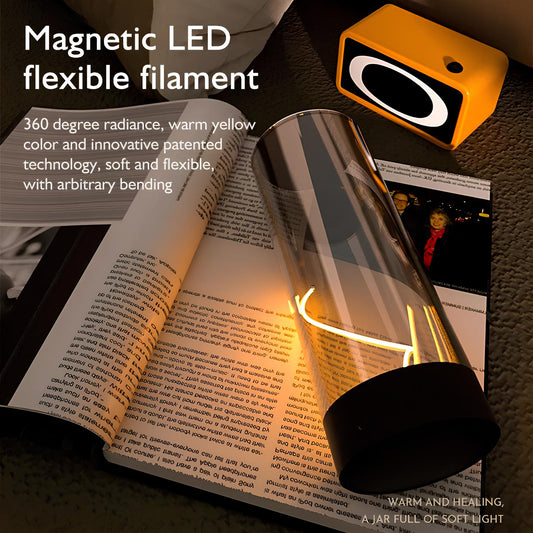 Nightstand-Table LED Lamp with Magnetic Bendable Filament, Dimmable and Rechargeable