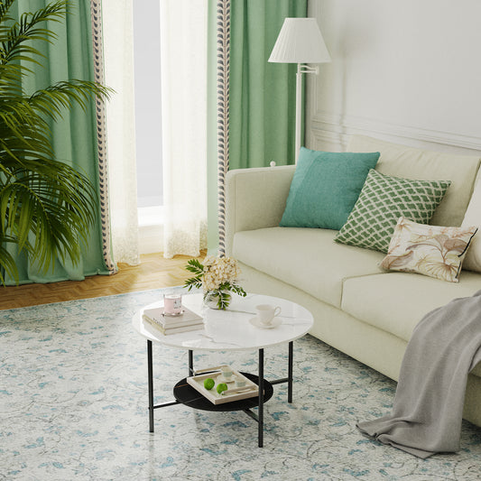 2-Tier Round Glass Coffee Side Table with Metal Steel Frame