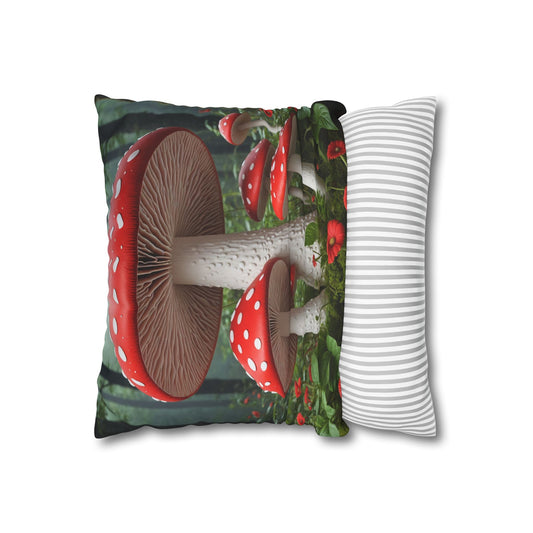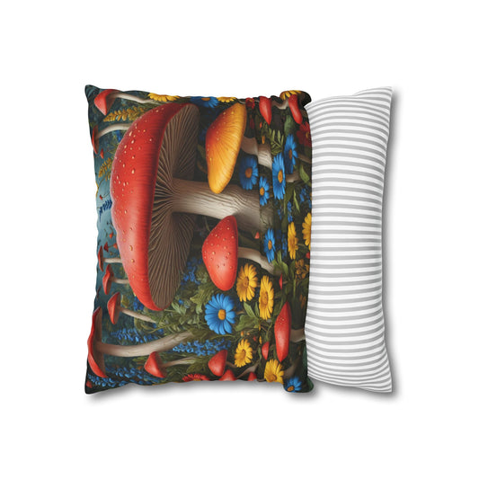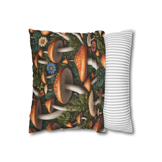 Enchanting Mushroom Square Cushion Cover, Cottagecore Pillowcase, Flowers and Mushroom, Mystical Mushroom Haven, Vintage Mushroom Pillowcase