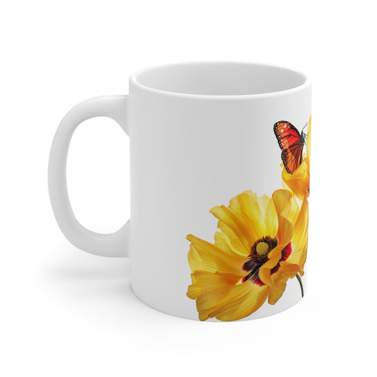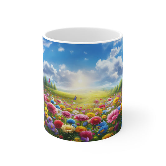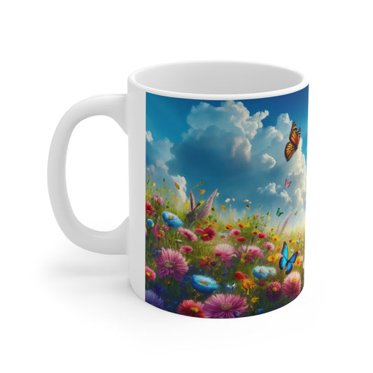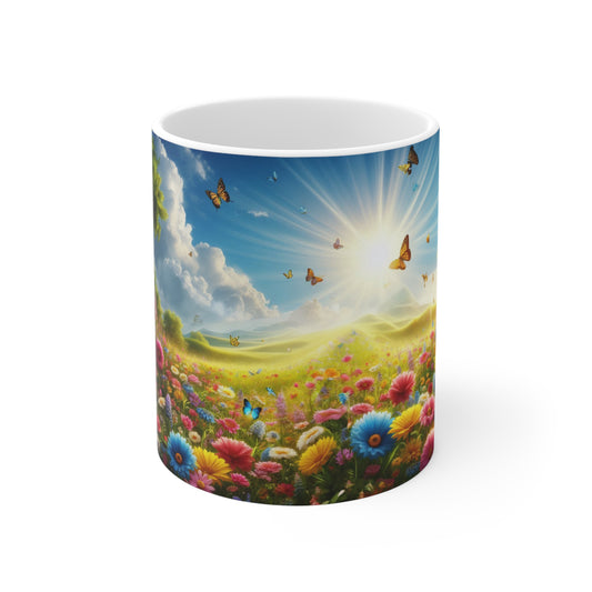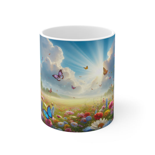 Floral Field, Butterflies and sunshine Coffee Mug, Floral Tea cut, Mother's day, Gift for her 11oz