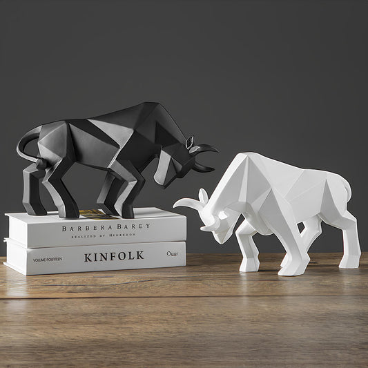 Geometric Bull Statue – Modern Resin Ox Sculpture Decor