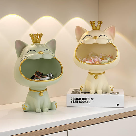 Fortune Crown Big Mouth Cat Entrance Key Storage Tray Decorative Ornament