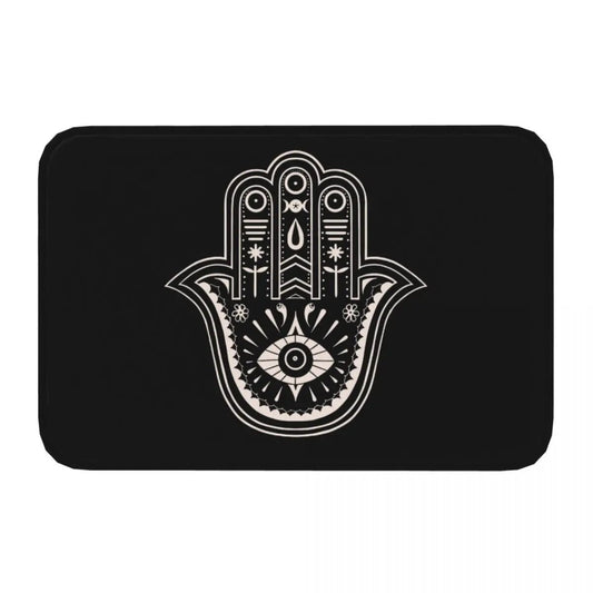 Hamsa Hand Fatima Non-Slip Doormat – Decorative and Safe Entryway Rug