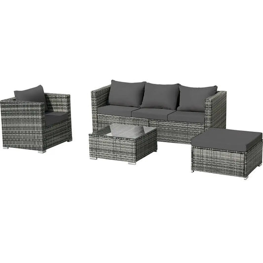 4 Piece Rattan Garden Patio Sofa Sets with Coffee Table