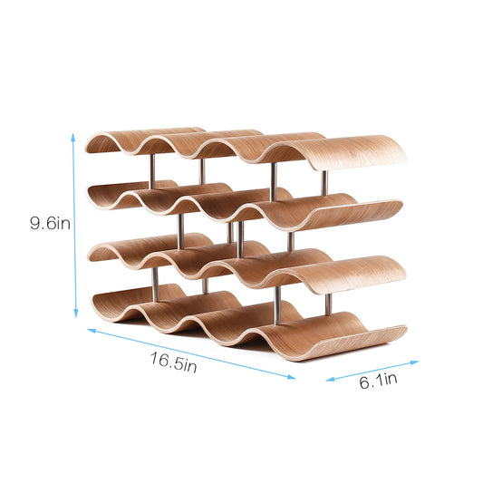 4 Tier Wave Bamboo Wine Rack 14 Bottle Set