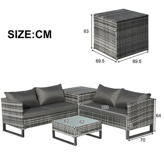 4PCS Garden Rattan Corner Sofa Set Outdoor Furniture Patio Sofa With Storage Box