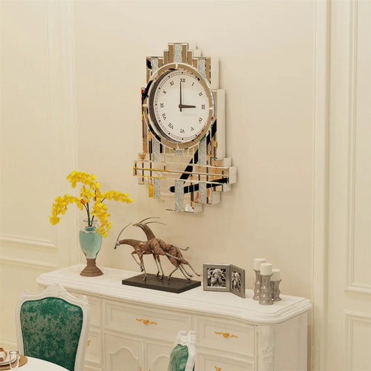 LUVODI Crushed Diamond Retro Art Roman Numeral Mirrored Wall Clock
