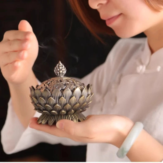 Lotus Incense Burner for Buddha Worship and Sandalwood Fragrance