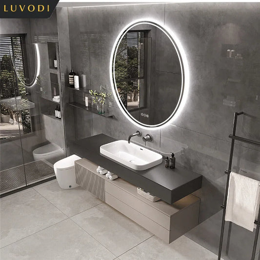 LUVODI Illuminated Round Mirror for Bathroom Touch Screen Dimmable Anti-fog