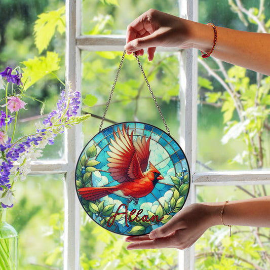 Personalized Stained Glass Cardinal Suncatcher – Custom Memorial Window Hanging