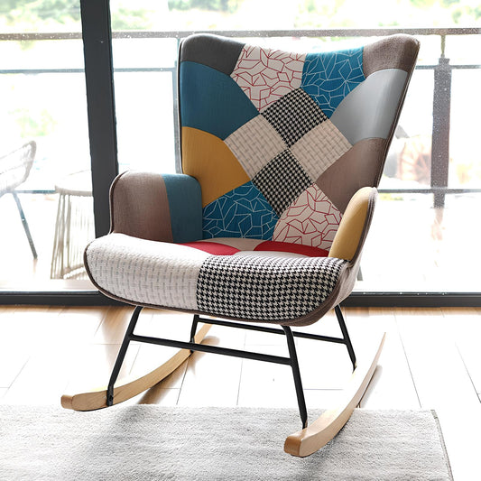 Rocking Swivel Patchwork Yellow Blue Pink Orange Grey Armchair Seat Footstool