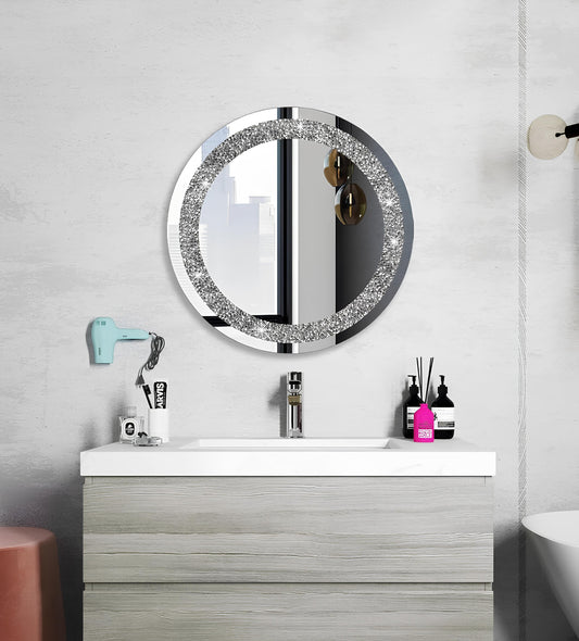 Round Decorative Wall Mirror with Crushed Crystal Diamonds