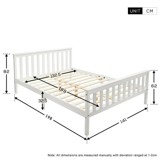 Solid Pine Wood White Double Bed Frame
