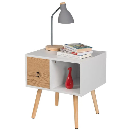 Bedside Table with Small Drawer Wooden Storage Compartment