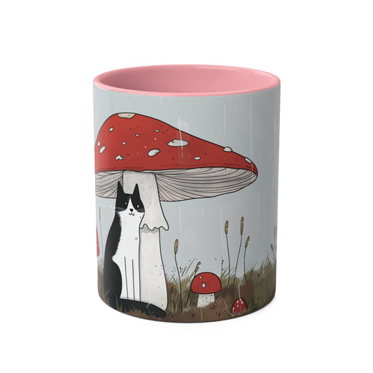 Black Cat and Mushroom Coffee Mug, Best Funny Tea Mug, Gift For Friends, Cute Birthday Coffee Cup, Two - Tone Coffee Mug , 11oz