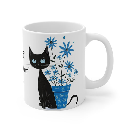 Black Cat and the Plant Pot White Ceramic Coffee Mug, Kitten Coffee Cup, Goft for Her, Mother's Day, Gift Idea,11oz
