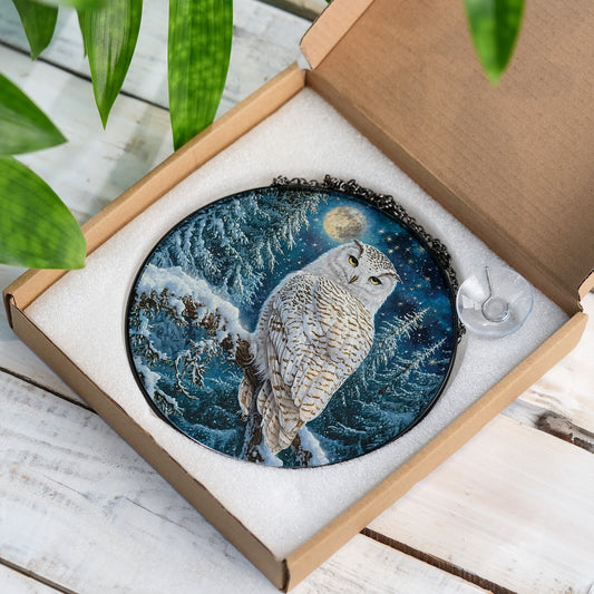 White Owl Stained Glass Effect Suncatcher for Window Hanging
