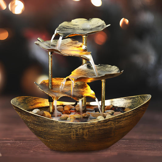 Water Over Sailing Lotus Leaf Tabletop Fountain Waterfall