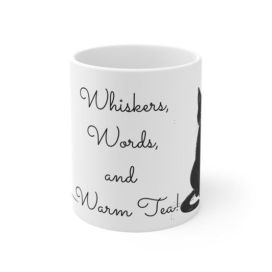 Whiskers, Words and Warm Tea Cat Lovers Coffee Mug, Cute Cats Coffee Cup, Cats and Kitties Tea Cup, Gift for Her, Gift Idea, 11oz