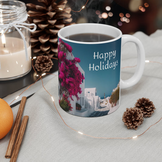 White Cottage and Flowers White Ceramic Coffee Mug, Floral Tea Cup, ORCA Coating Coffee Cup, Gift for Her, Mother's Day, Gift Idea,11oz