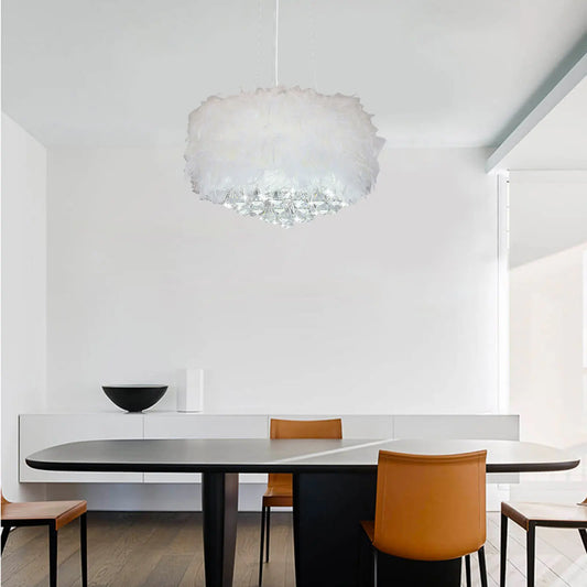 White Crystal and Feather Chandelier