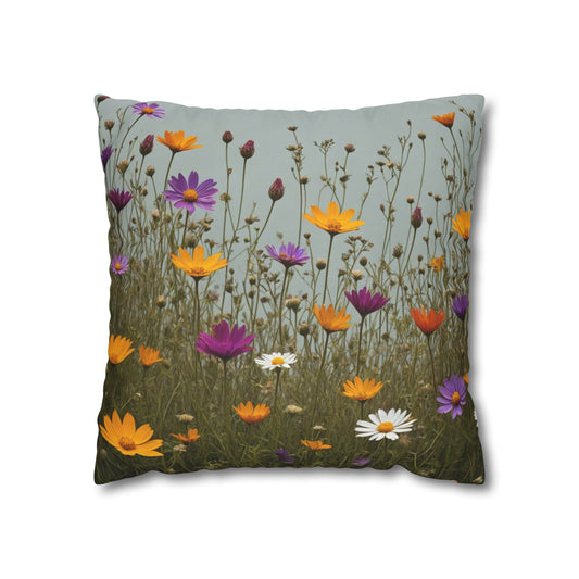 Wild Flowers Cushion Cover, Lilac and Yellow Flowers Cushion Cover, Floral Pillow, Botanical Pillow, Camomile Pillow
