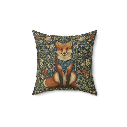 William Morris Style Fox and Botanicals Square Pillow, Fox and Flowers, insert included