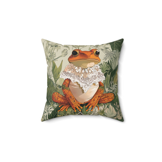 William Morris Style Frog and Botanicals Square Pillow, Frog and Flowers, insert included