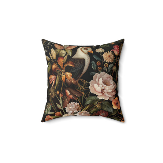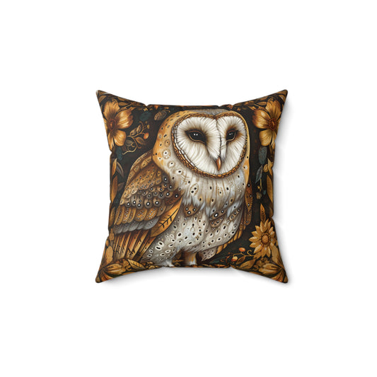 William Morris Style Square Pillow with Barn Owl Design, insert included