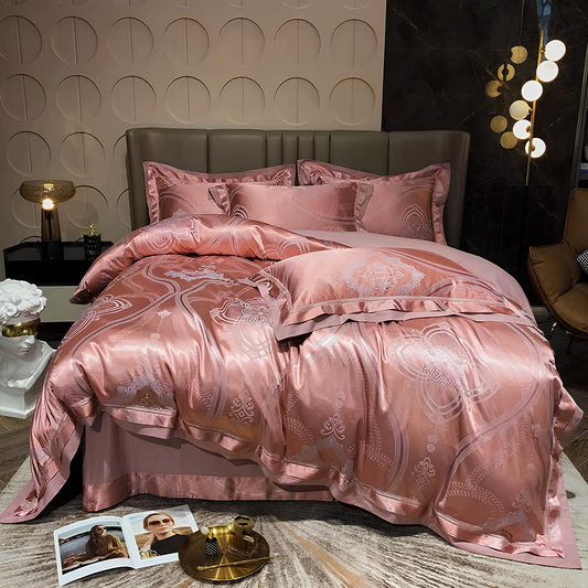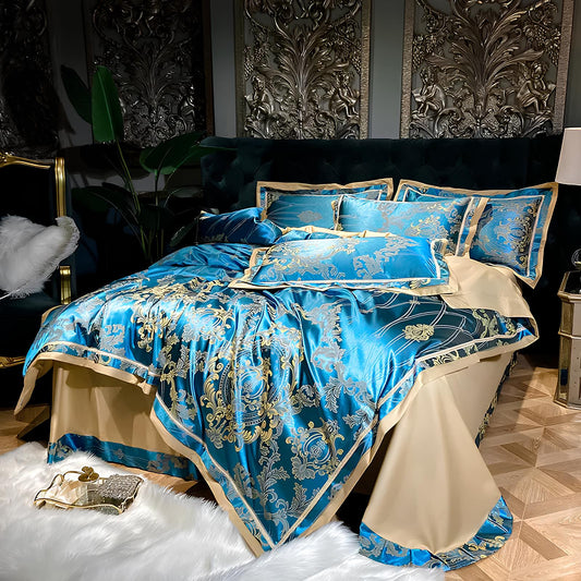 Premium Aqua Blue Jacquard Duvet Set 4Pcs